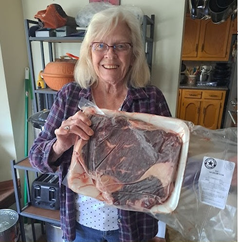 "People don't realize what's in this box. Look at the size of this chuck roast. I mean, this is prime meat you're getting. Prime meat."
