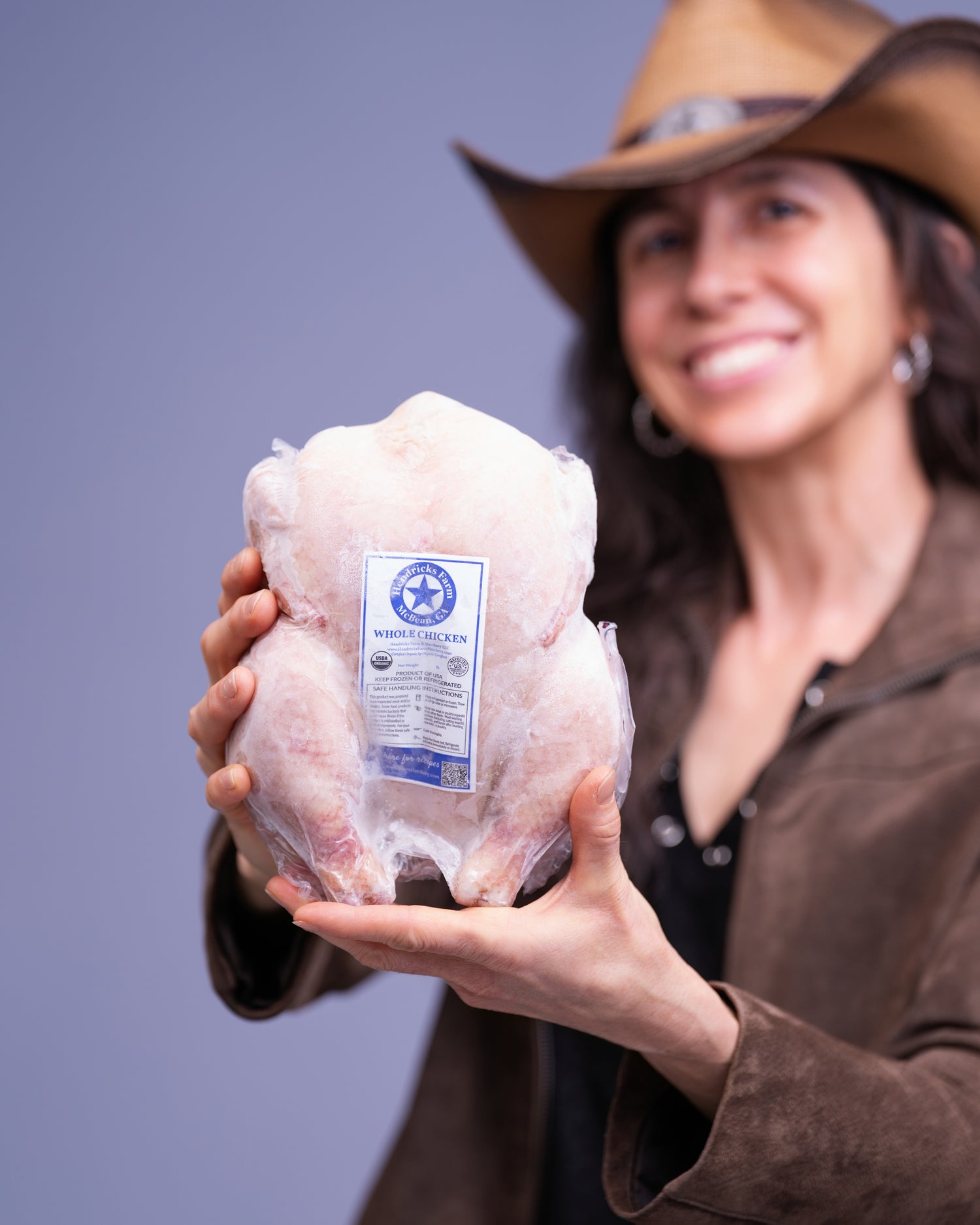 Our USDA butcher processes each chicken. Then, it is air-chilled before being vacuum-sealed, weighed, and labeled.